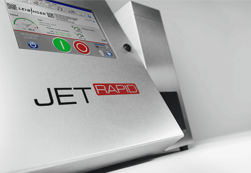 Want to move up a gear? In terms of sheer speed, the JET RAPID high output printer leaves the others standing. Combining top speed with LEIBINGER’s characteristic reliability, and it guarantees legible codes, like use-by dates or batch markings, and ultimate levels of productivity. The JET RAPID printer can increase production efficiency by up to 30% and print on a wide range of materials at up to 800 m/min.